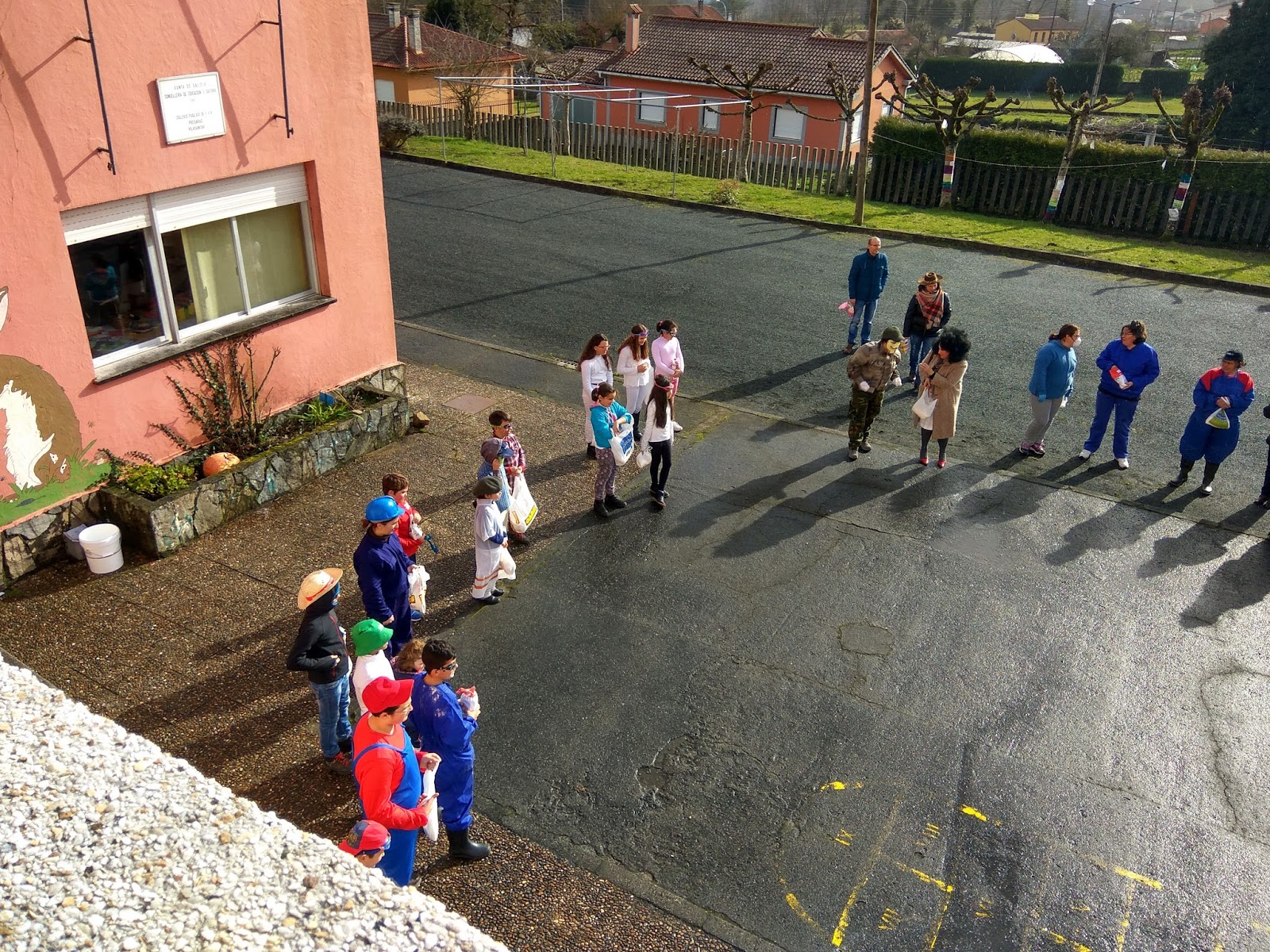 Gozamos dunha xornada intensa e moi divertida na que percorremos as distintas parroquias do municipio onde nos foron agasallando con doces típicos destas datas, algo de diñeiro, lambetadas e, sobre todo, con grandes aplausos, risas e moito cariño. Nós dedicámoslle a todos cantos nos viron un baile fermoso e amosámoslles orgullosos os nosos disfraces á veciñanza. Logo, xa na escola, fixemos a xa tradicional fariñada na que acabamos todos brancos coma pantasmas!